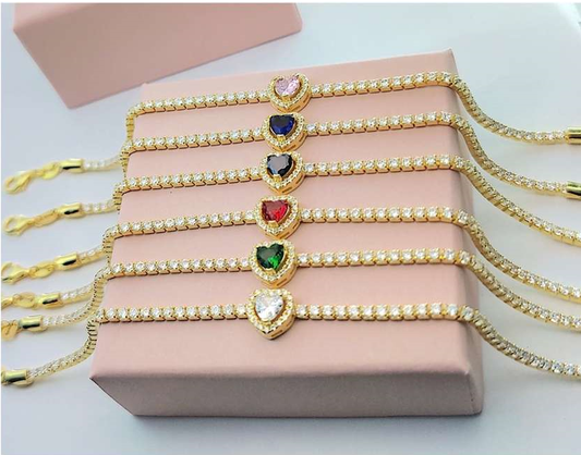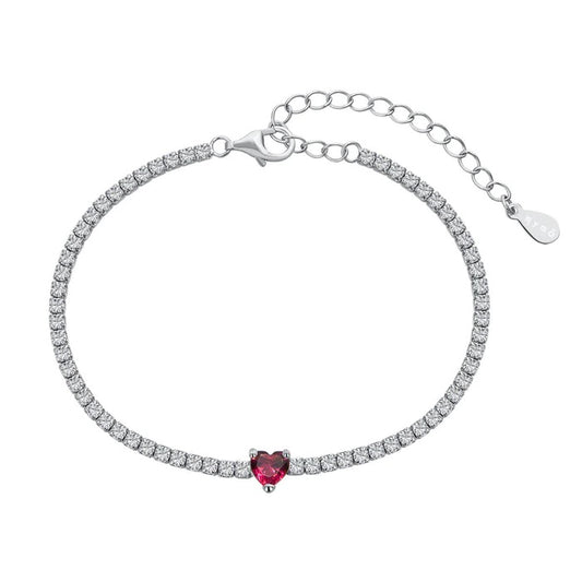 Bracciale Donna Tennis Con Cuore Centrale di Zircone Colorato e ZIrconi bianchi in Argento 925