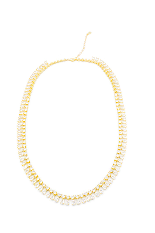 Collana Modello Tennis da Donna con Zirconi a Goccia Pendenti in Argento 925