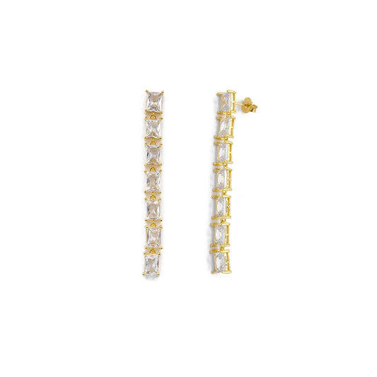 Orecchini Tennis Pendenti con Zirconi bianchi Argento 925 Dorato