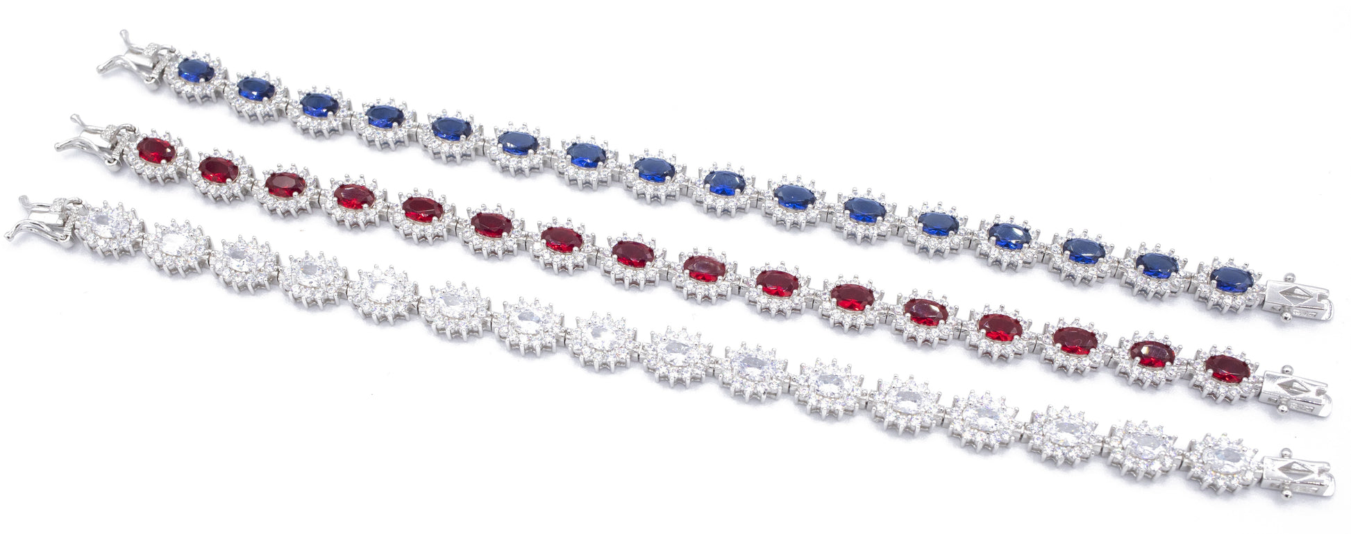 Un incontro di pietre di forma ovale con taglio a brillante arricchite da un prezioso giro di zirconi bianchi a taglio tondo.