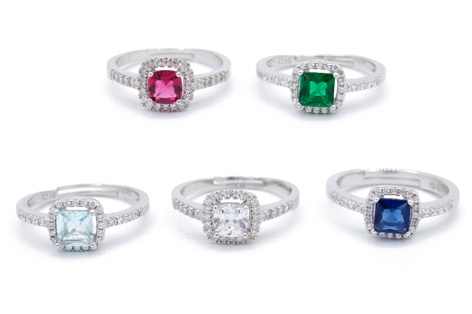 Anello in Argento 925 da Donna Modello Kate con Zircone di colore a Taglio Quadrato