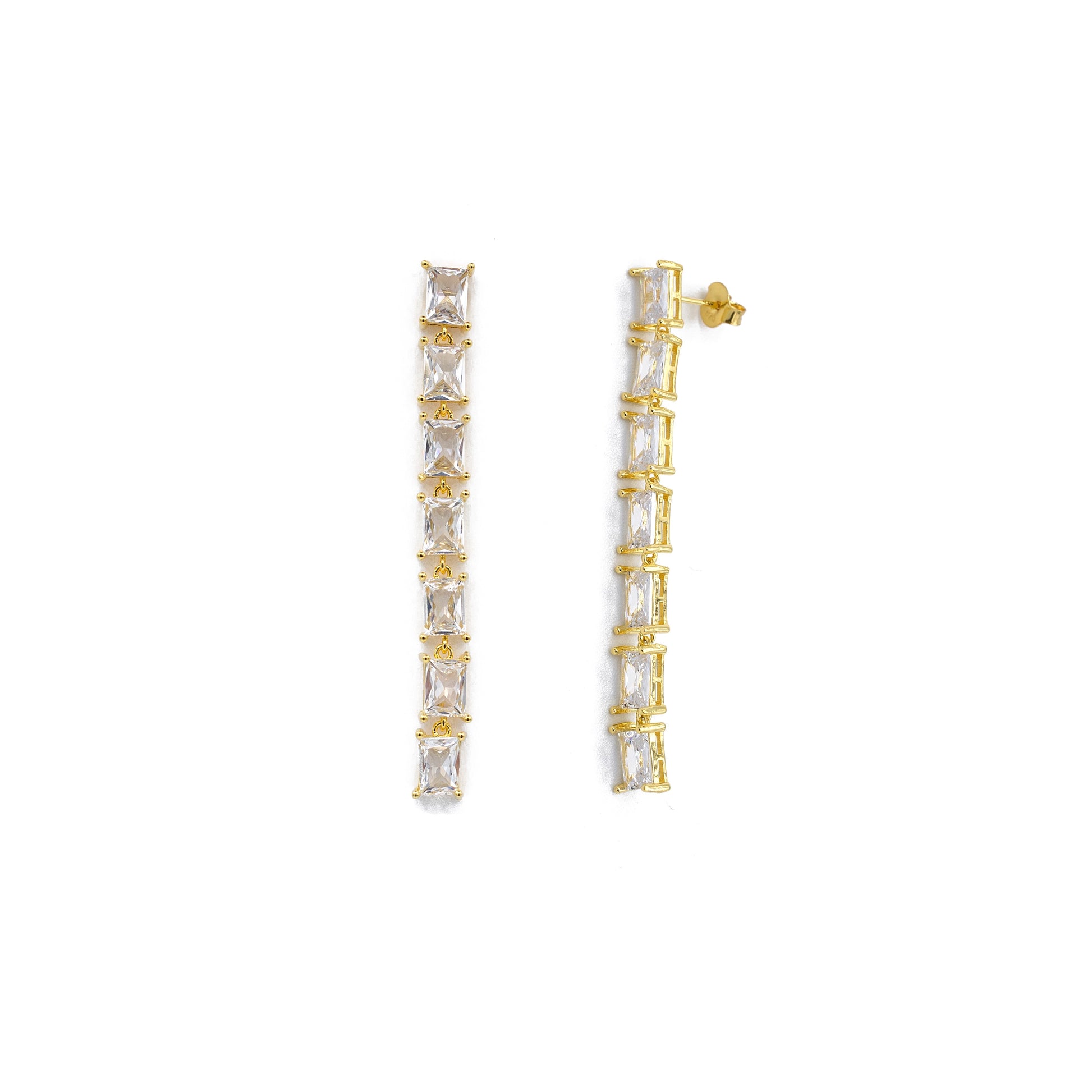 Orecchini a Tennis Pendenti in Argento 925 Dorato/Bianco Con Zirconi Bianchi Taglio Brillante Forma Ottagonale.