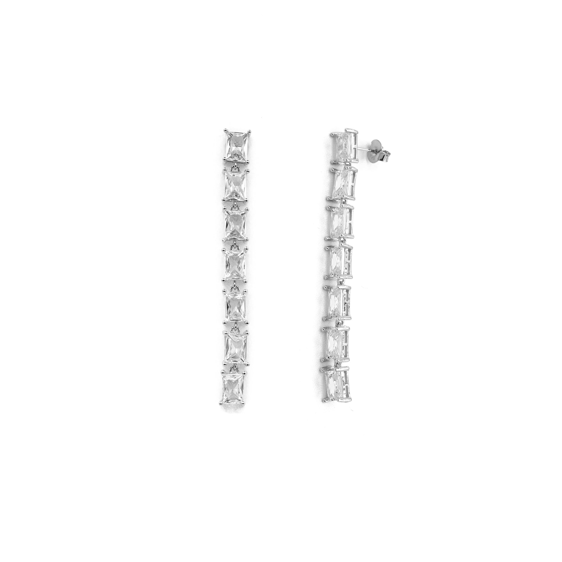 Orecchini tennis pendenti in argento 925 bagnato in oro giallo o bianco con zirconi bianchi taglio brillante forma ottagonale.