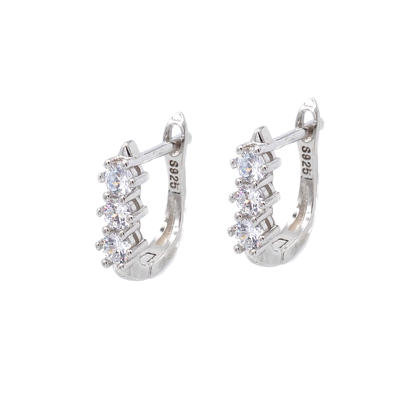 Orecchini da Donna con Chiusura Napoletana Modello Trilogy con Zirconi Bianchi in Argento 925