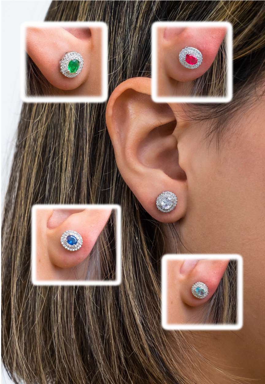 Orecchini da Donna Modello Kate con Pietra di Colore e Doppio Giro di Zirconi Bianchi in Argento 925